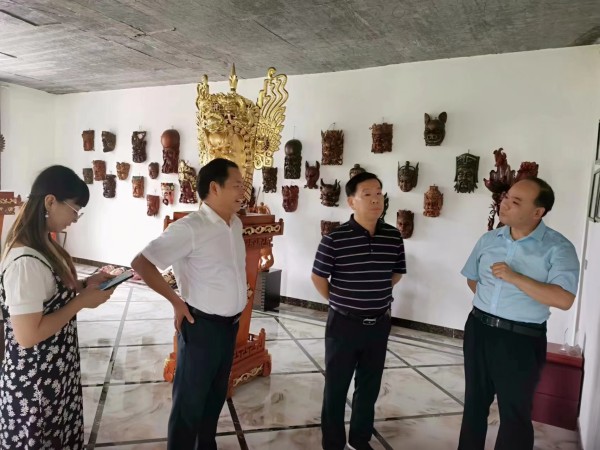 调研组一行来到湘东,在腊市镇机关干部邓华等陪同下,认识省劳模——彭国龙。现为萍乡市湘东区国龙傩艺作坊负责人、2011年被江西省文化厅评为“江西省非物质文化遗产项目萍乡湘东傩面具代表性传承人”。他专雕“傩面具”近四十年,荣获中国傩文化传承保护基地首批“傩面雕刻传承人”、 “第五届江西省优秀高技能人才赣鄱工匠”等