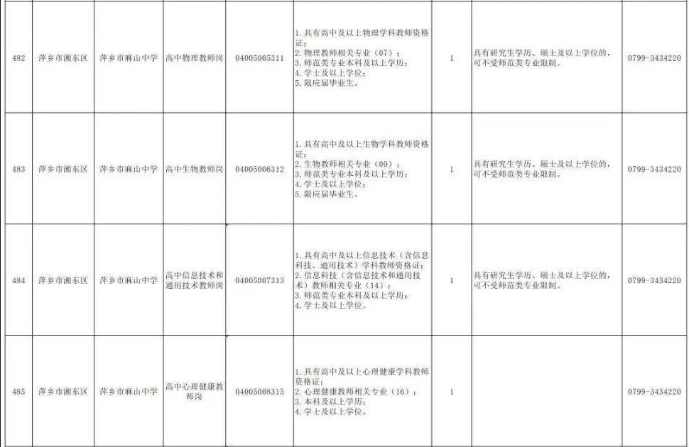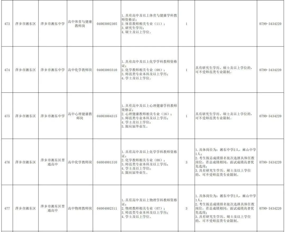 (萍乡市岗位表)