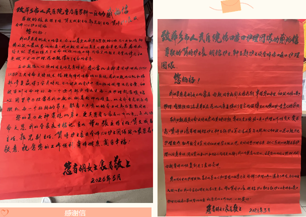 我们是患者胡女士的家属,母亲因重病卧床治疗期间,幸得您们专业细致的伤口造口护理,有效预防了各类并发症,为她的康复提供了坚实的保障,在此,向您们致以最衷心的感谢!