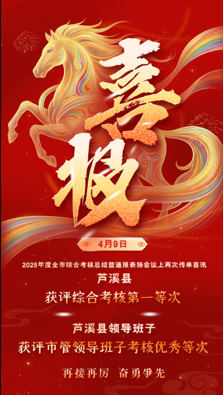 实干为笔,实绩作答。4月9日,2025年度全市综合考核总结暨通报表扬会议召开,芦溪县以敢闯敢试的魄力、实干笃行的担当,凭借实打实的亮眼成绩,获评2025年度综合考核第一等次,在县域高质量发展赛道上勇立潮头、再续荣光。