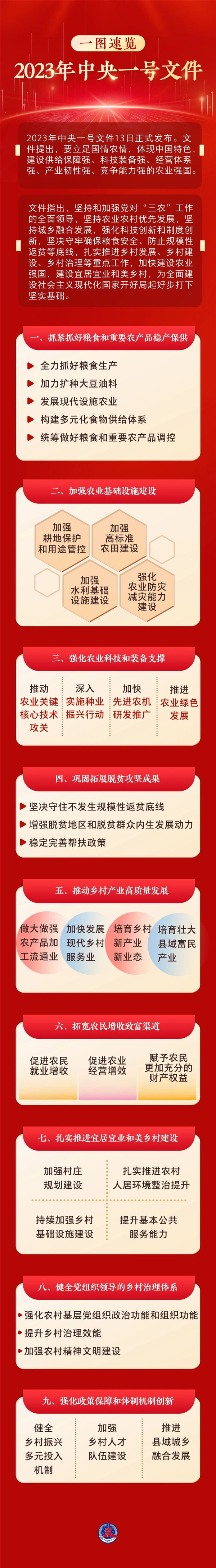 2023年中央一号文件2月13日发布。这是党的十八大以来第11个中央一号文件,对新一年“三农”工作进行部署。 务农重本,国之大纲。 党的十八大以来,习近平总书记就“三农”工作作出一系列重要指示。这些重要指示,在每一个中央一号文件中,都得到充分贯彻。 回顾11个“一号文件”,一个鲜明