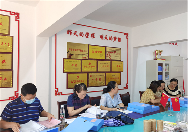 刘洁兰一行来到安源学校实地查看了学校的整体环境,听取了学校负责人关于师生报到、疫情防控、“双减”政策落实、课后延时服务等方面的工作汇报。
