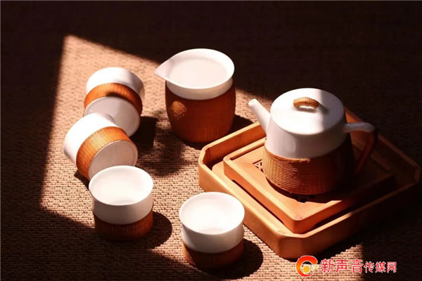 《三石竹艺·节节高升六头茶具》的创作灵感源于竹的外形及其坚韧不拔、清雅脱俗的气质。瓷胎为1300度高温烧制的高白瓷,再以非遗竹编工艺进行编织,一壶四杯一公杯,集美观性、功能性(防烫、防滑)于一体,为快节奏中的人们带来片刻宁静享受。