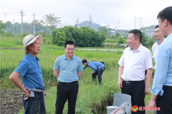 4月19日,区委书记李水清带队到五陂镇督导防汛安全、早稻种植等重点工作,副区长刘松随同,区农业农村局党组书记、局长杨林奕,市自然资源和规划局安源分局局长李继来,镇党委副书记、镇长贺嘉等在点陪同。