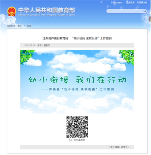 芦溪县幼小协同柔软衔接工作案例入选教育部学前教育宣传月典型案例。