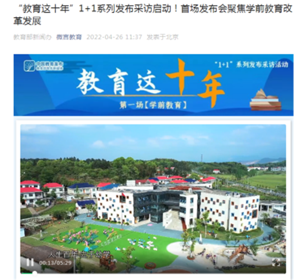 芦溪学前教育发展成效入选教育部1+1首场发布会《砥砺十年 奠基未来》宣传片。