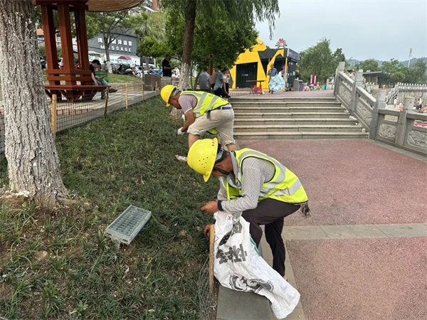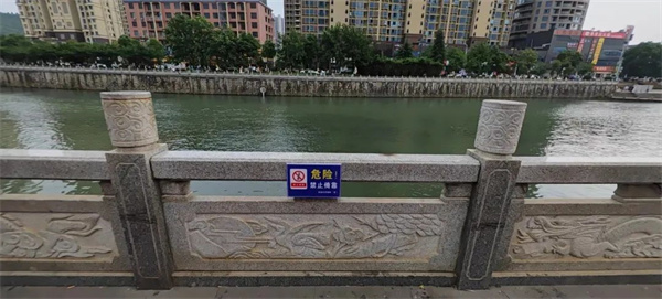 ▲县城管管理局加强对栗水河两岸安全设施检查、维护,并张贴警示牌