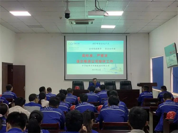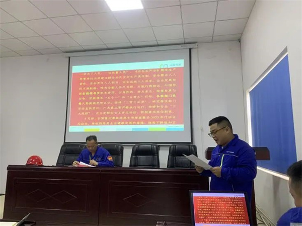 课前,由安健环管理部主任助理桂基栓宣贯中国环保党委书记、董事长周康致中国环保全体员工的安全生产公开信《人人参与安全 全员助力发展》。