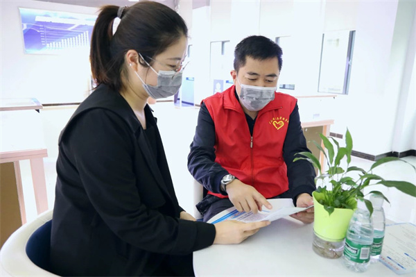 ▲青山镇便民服务中心工作人员正在为群众办理业务