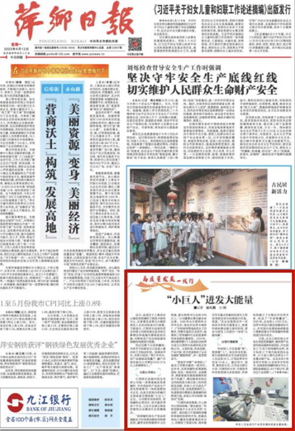 ▲6月12日,《萍乡日报》刊发通讯《“小巨人”迸发大能量》。