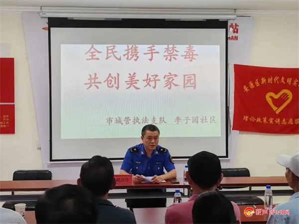 在第36个“国际禁毒日”来临之际,6月15日上午,直属一大队执法人员走进李子园社区开展以“全民携手禁毒,共创美好家园”为主题的禁毒宣传活动,与社区群众围坐在一起开了屋场贴心会。