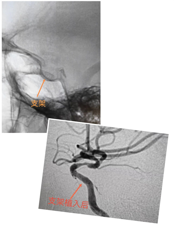 经过多学科会诊,建议积极处理患者右侧颈内动脉狭窄,为患者施行右颈内动脉支架植入术,以减少脑梗塞发生的风险。