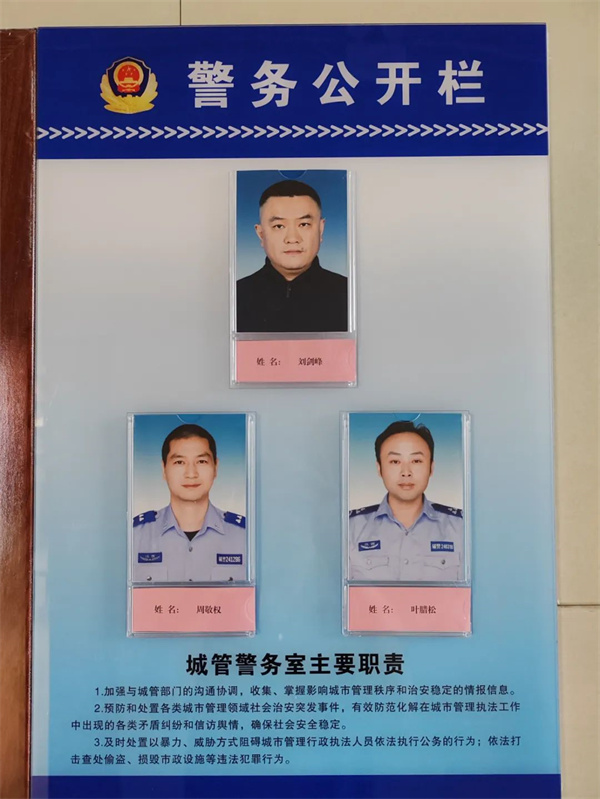 城管警务室的成立,实现了城管、警力资源的合理配置。公安部门将派民辅警进驻市城管支队,加强与城管部门的沟通协调,收集、掌握影响城市管理秩序和治安稳定的情报信息。