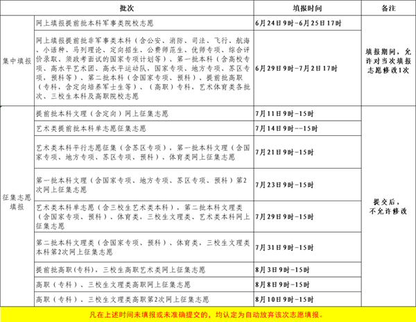 江西省2023年普通高校招生志愿填报时间安排