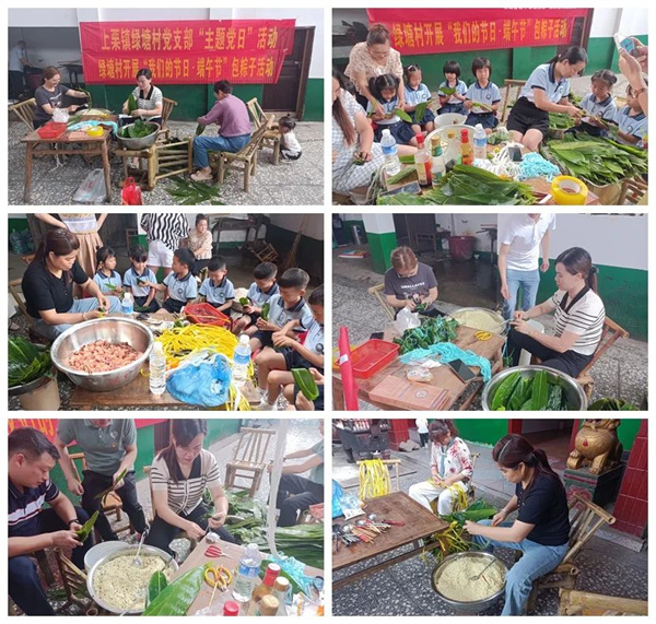6月19日,绿塘村在新时代文明实践站开展“我们的节日 端午节”包粽子活动。