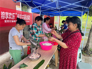 青山村联合富民村镇银行青山支行共同举办“艾意浓浓同包粽,粽享欢乐共发展”庆端午包粽子比赛。