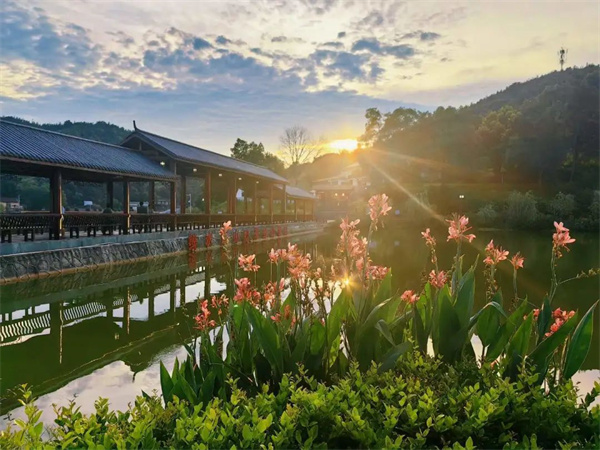 初秋时节,微风徐徐。在上栗县上栗镇泉之源田园综合体,清澈的湖面微波荡漾,沿岸有村民在木桥上悠闲散步。