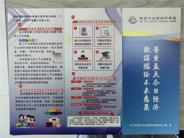 四是加大宣传力度,营造普查氛围。积极做好普查宣传动员,东大街上下联动,采取多种形式,通过微信群、公众号、LED电子显示屏幕、发放宣传册、公示栏张贴海报等“线上+线下”的宣传方式做好普查政策宣传推广工作,引导普查对象支持普查工作,营造“群众参与、企业配合”的浓厚氛围。