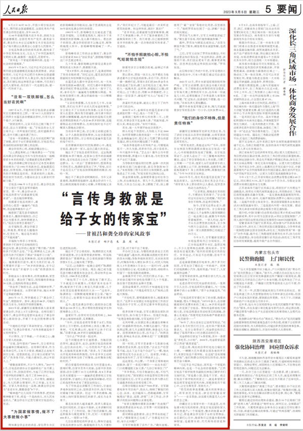 9月6日,人民日报刊文《“言传身教就是给子女的传家宝”——甘祖昌和龚全珍的家风故事》。