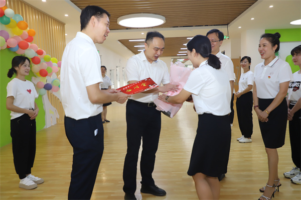 李萍,中小学一级教师,从事幼儿教育教学工作14年。在区中心幼儿园一部,何超向李萍致以节日的祝福,对她在幼儿教育上的辛勤付出给予肯定,并与园内教师认真交流,了解园内规模、师资力量等情况。何超指出,幼儿教育是幼儿感知世界、认识社会的一个关键时期,对幼儿成长尤为重要。何超希望,幼儿教师要继续保持一颗对幼儿的爱心,不断提升专业能力,展现幼儿教师能力与水平,让孩子健康快乐成长。