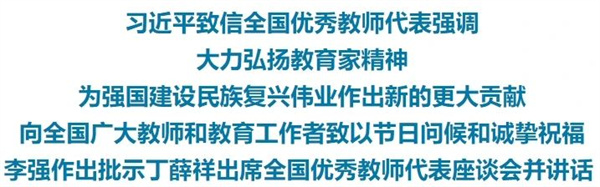 习近平致信全国优秀教师代表 向全国广大教师和教育工作者致以节日问候和诚挚祝福