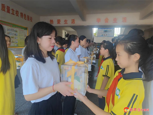 金山镇中心小学学生代表为全体老师献上了蛋糕,祝他们教师节快乐,感谢教师们辛勤的付出。