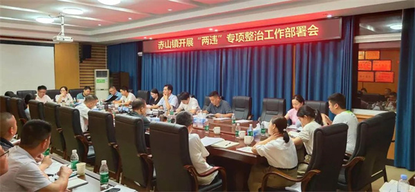 为有效打击赤山镇辖区内违法占地、违法建设行为,进一步加大“两违”整治力度,规范城乡建设秩序。近日,赤山镇开展“两违”专项整治工作部署会,对于“两违”行为坚决进行严厉打击,对违章建筑物依法依规进行拆除,绝不纵容包庇,以“零容忍”态度依法严厉打击违法占地、违规建设行为。