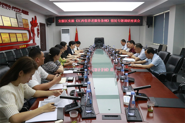 随后,调研组成员、区民政局相关人员、养老服务机构负责人围绕条例实施情况开展座谈。