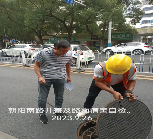 此次自检排查先后对道路检测修复工程的武功山大道、楚萍西路、朝阳南路窨井盖的铺设质量、路面摊铺质量、路面平整度、路面病灶等工程品质进行汇总收集,重点针对楚萍西路部分检查井与路面不平整、井盖有异响和松动的问题,在此路段运行三个月后进行排查,全面检查路面是否出现质量问题。同时对武功山大道原有病灶处理不理想的情况进行深入探讨。