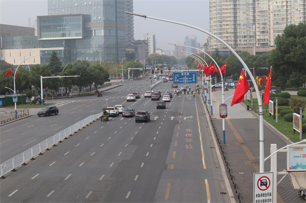 截至目前,在公园路,康庄路,滨河西路,跃进路,建设路,秋收广场,绿茵广场,北桥转盘等干道灯杆悬挂国旗650面,旗帜整齐划,迎风招展,成为路上一道亮丽的风景线,全力营造喜庆、欢乐、祥和的节日氛围。