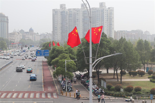 红旗飘飘迎国庆 处处飘扬“中国红”