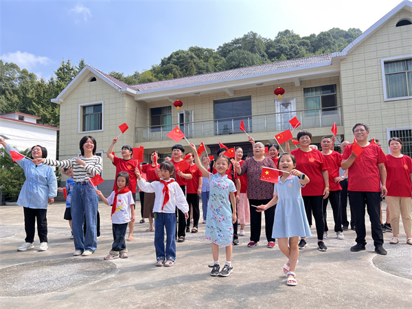 升国旗、唱国歌,在院落中央,近40位从四面八方赶回来的杨家人整齐列队,肃穆而立。随着《义勇军进行曲》嘹亮响起,鲜艳的五星红旗冉冉升起,在空中高高飘扬。9年来,每逢重要节假日,杨家人都会聚集在这里,以升旗仪式表达对祖国的祝福。