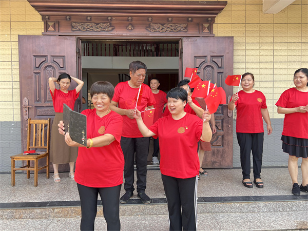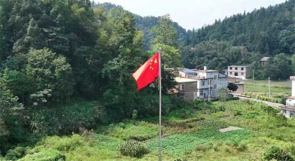 9月29日上午,在上栗县长平乡塘上村一个农家小院里,76岁的杨国辉和家人们聚在一起,举行了一场升国旗仪式。