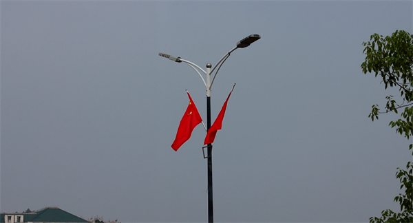 在各主次干道,道路两旁的行道树上悬挂着五星红旗,在绿树的映衬下那一抹“中国红”显得格外醒目,鲜艳的五星红旗不仅点亮了城市的每一个角落,更点燃了市民的心中的爱国情,以此表达市民对祖国的祝福。