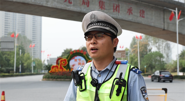 开发交警大队四中队辅警 殷军:我是非常热爱我的工作,并且我的家人也非常支持我的工作,我认为每一位交警全心全意为人民服务,是我们必须要做好的事情。我最愿意看到的就是大家开开心心过节,并且在我们这个辖区的交通是畅通有序、安全的。