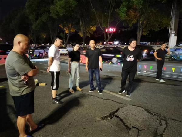 10月2日18时许,萍乡市北桥海天阁路段路面突发塌陷,萍乡市城市管理局局长张达彪、副局长廖柏学、副局长刘纯德、市政科科长官天赐、市市政设施维修管理处处长谭晖等第一时间赶到现场,组织指挥处置工作。