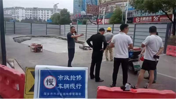 萍乡北桥一路段塌陷!城管局长现场指挥