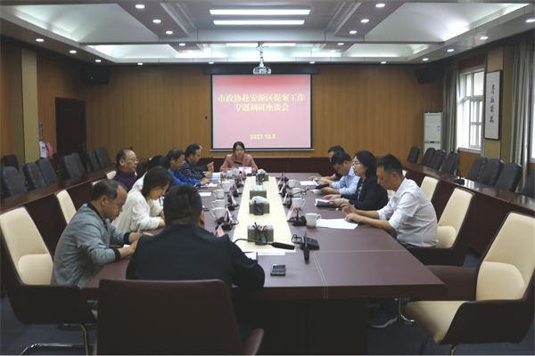 10月8日,市政协副主席贺雪平率市政协提案委到安源区开展提案工作调研并召开座谈会,区政协党组书记、主席洪光星,区政协副主席陈鸿等参加会议。