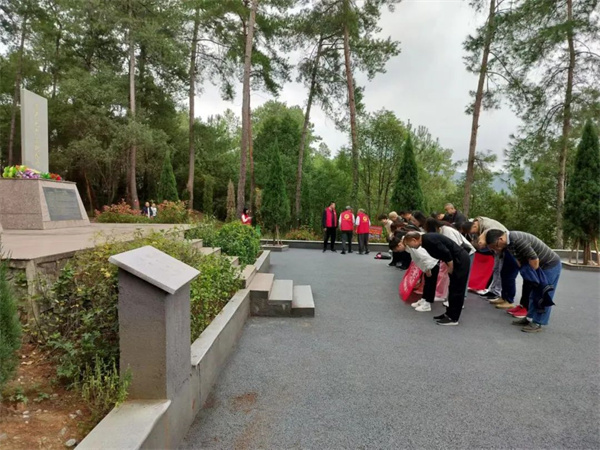 金秋十月,秋高气爽。黄花村党支部及萍乡电力分公司党支部一行人来到幕冲烈士陵园,凭悼革命先烈,追忆光辉历史,接受革命传统教育和精神洗礼。在烈士纪念碑前,大家认真听取讲解员对烈士英雄事迹的介绍,重温革命历史。面对高耸的纪念碑,全体党员静默肃立,寄托深切哀思,表达崇高敬意。随后全体党员开展清扫烈士陵园活动,对烈士陵园内的落叶、杂草、树枝进行清理,认真细致的擦拭了每一块烈士墓碑。