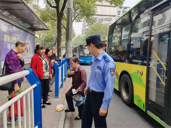 “多谢你们啦,这样一件小事你们都愿意花时间帮我解决,真的很感动!”一位站在公交站台前的老人,对着三名执法人员谢个不停。