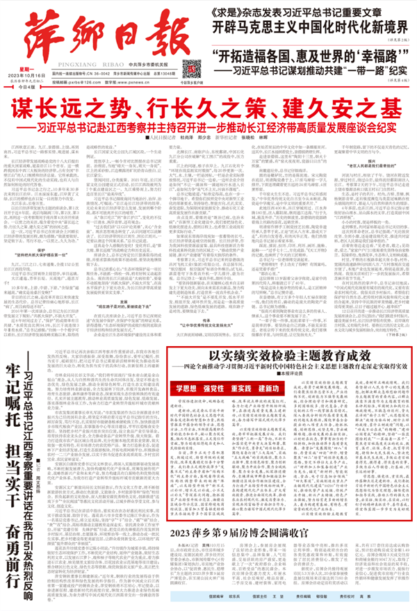 10月16日,萍乡日报刊发评论员文章《以实绩实效检验主题教育成效》。