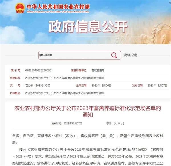 2023年农业农村部畜禽养殖标准化示范场复验合格名单