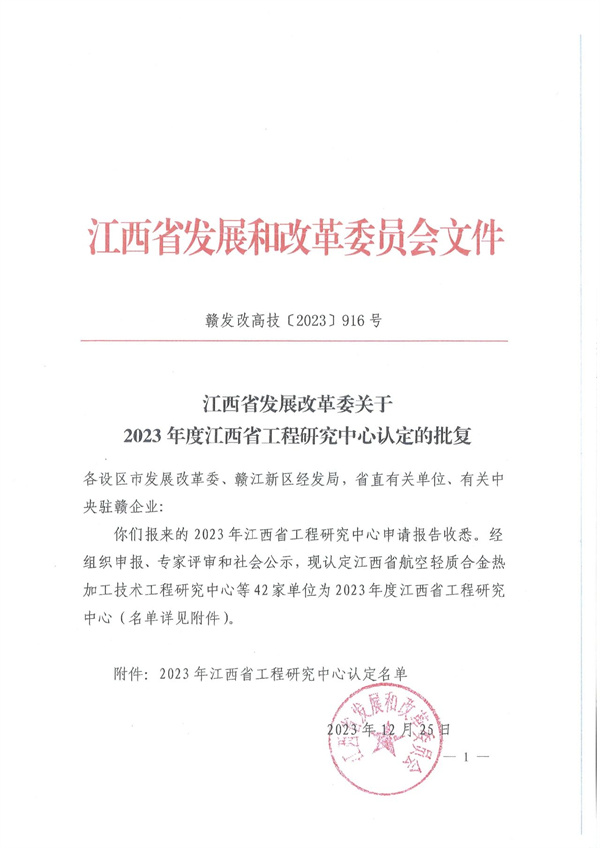 喜讯!萍乡经开区新增一家省级工程研究中心