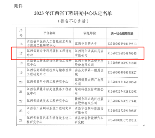 日前,江西省发展和改革委员会公布了2023年江西省工程研究中心认定名单,萍乡市有三家企业被认定。我区企业江西阿尔法高科药业有限公司的“江西省高分子药用辅料工程研究中心”获批认定。