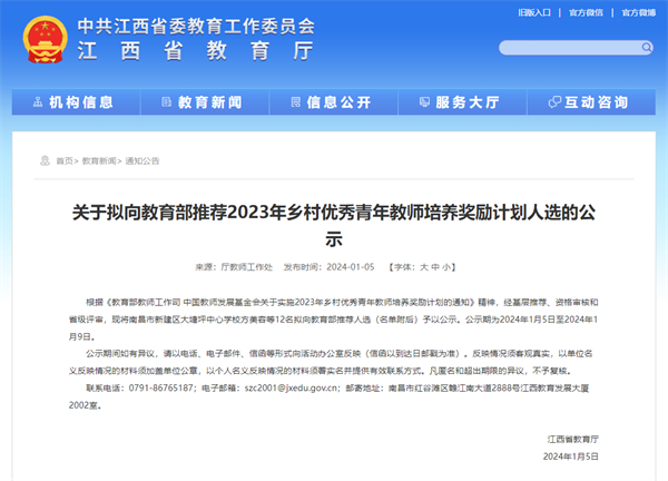 关于拟向教育部推荐2023年乡村优秀青年教师培养奖励计划人选的公示