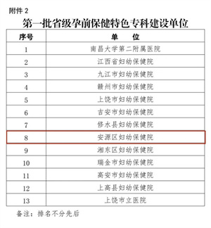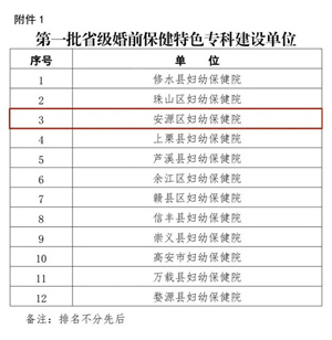 日前,江西省卫生健康委发布《关于公布第一批省级婚前保健特色专科和孕前保健特色专科建设单位的通知》,全省仅三家医院综合评分达到省级婚前保健特色专科和孕前保健特色专科创建标准,安源区妇幼保健院就是其中之一。