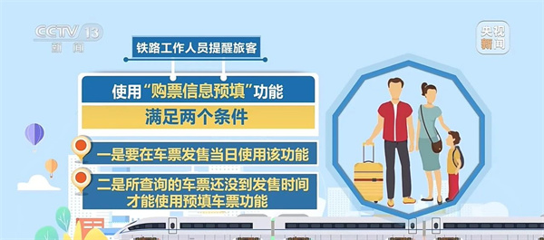 旅客可于车票起售当日0:00至开售时间前,预先填写乘车人、车次、席别等具体信息,在车票开始发售时一键提交订单并完成支付。注意,使用该功能需要满足以下两个条件