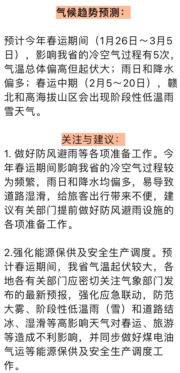 春运期间我省以阴雨天气居多