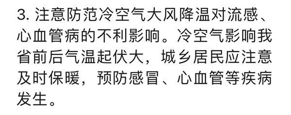 应注意防范局地大雾、低温阴雨