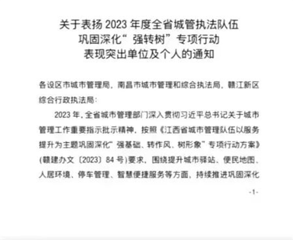 近日,县城市管理局荣获2023年度全省城管执法队伍巩固深化“强转树”专项行动表现突出单位,这是该部门获评2023年度省城管执法工作先进单位后又一殊荣。